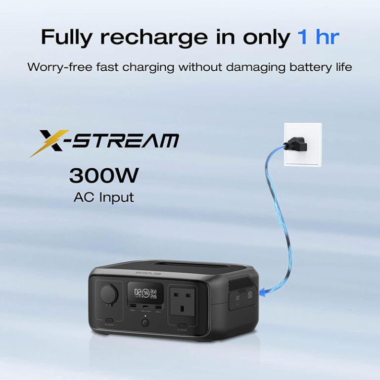 • Versatile Charging Options: Using X-Stream technology, RIVER 3 can be fast AC charged from 0-100% in 1 hr without causing battery damage. RIVER 3 also supports solar, car, and generator charging.